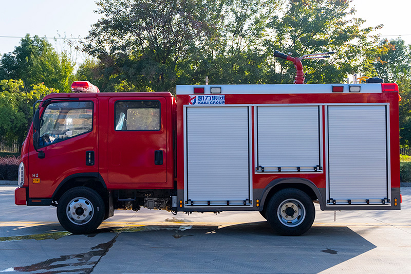 總體布置 | 整車由消防員乘員室和車身兩大部分組成,車身布置采用內(nèi)藏罐式結(jié)構(gòu), 左右兩側(cè)為器材箱,中部為水罐,器材箱后部為泵房。 |